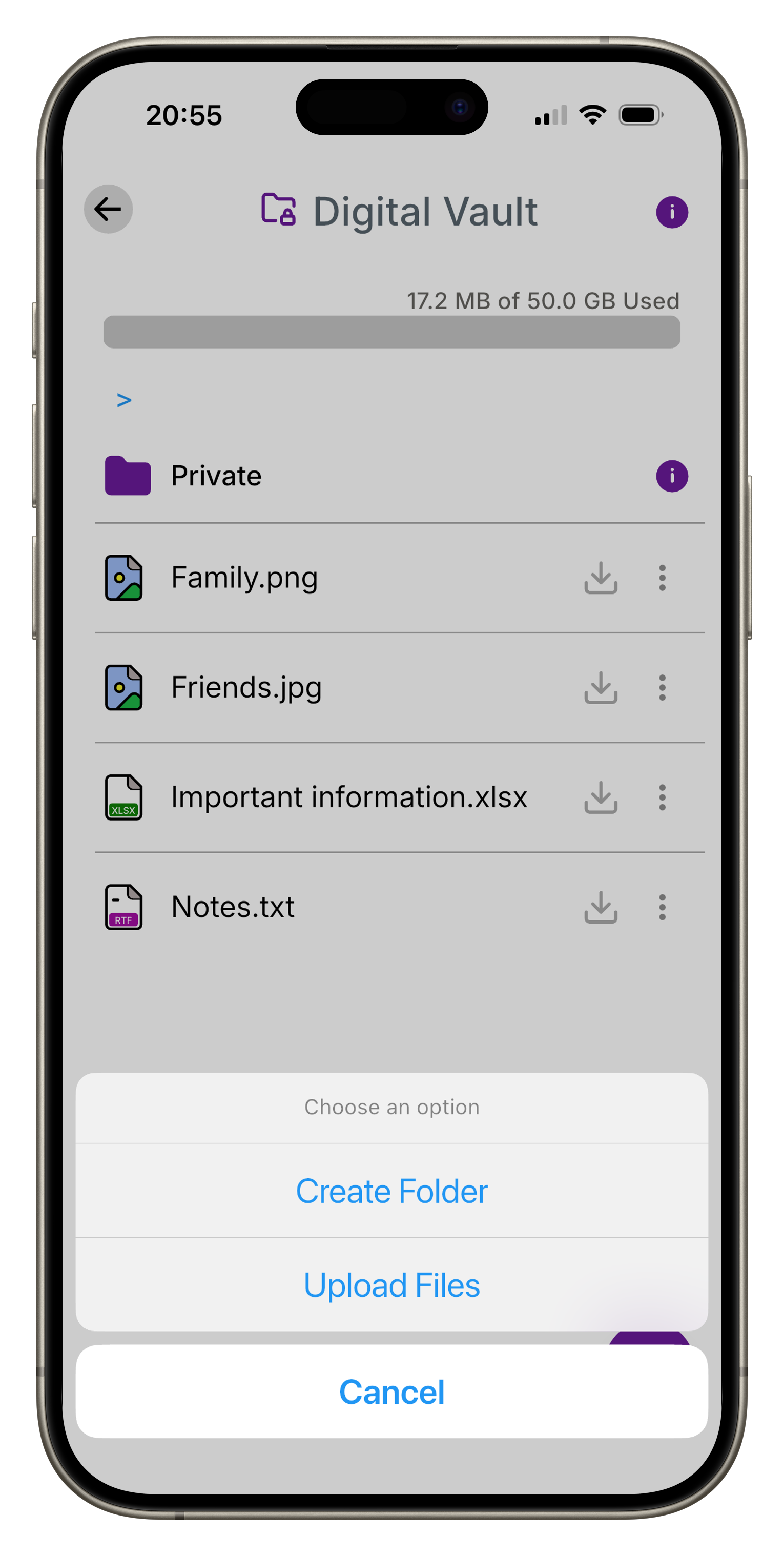 50 GB of military-grade encrypted cloud storage. Store passports, contracts, certificates, and any document you never want to lose - accessible instantly, always private.